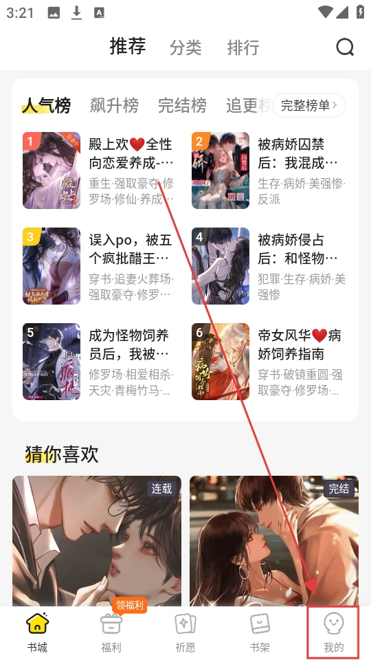 :还有阅读背景和字体的设置,还有智能搜索引擎,会根据你的阅读习惯推荐你感兴趣的小说。2、