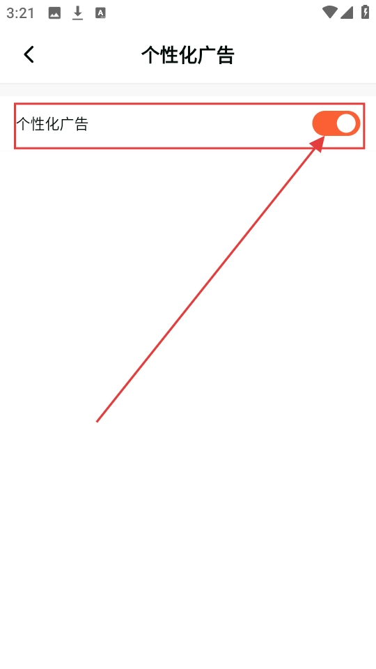 4、进入个性化广告设置页面后,找到【个性化广告】的开关按钮并点击,把它切换至关闭状态,这样就能减少收到的个性化广告推送了。