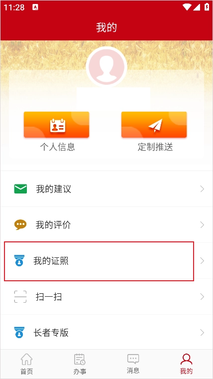 2、然后选择我的证照