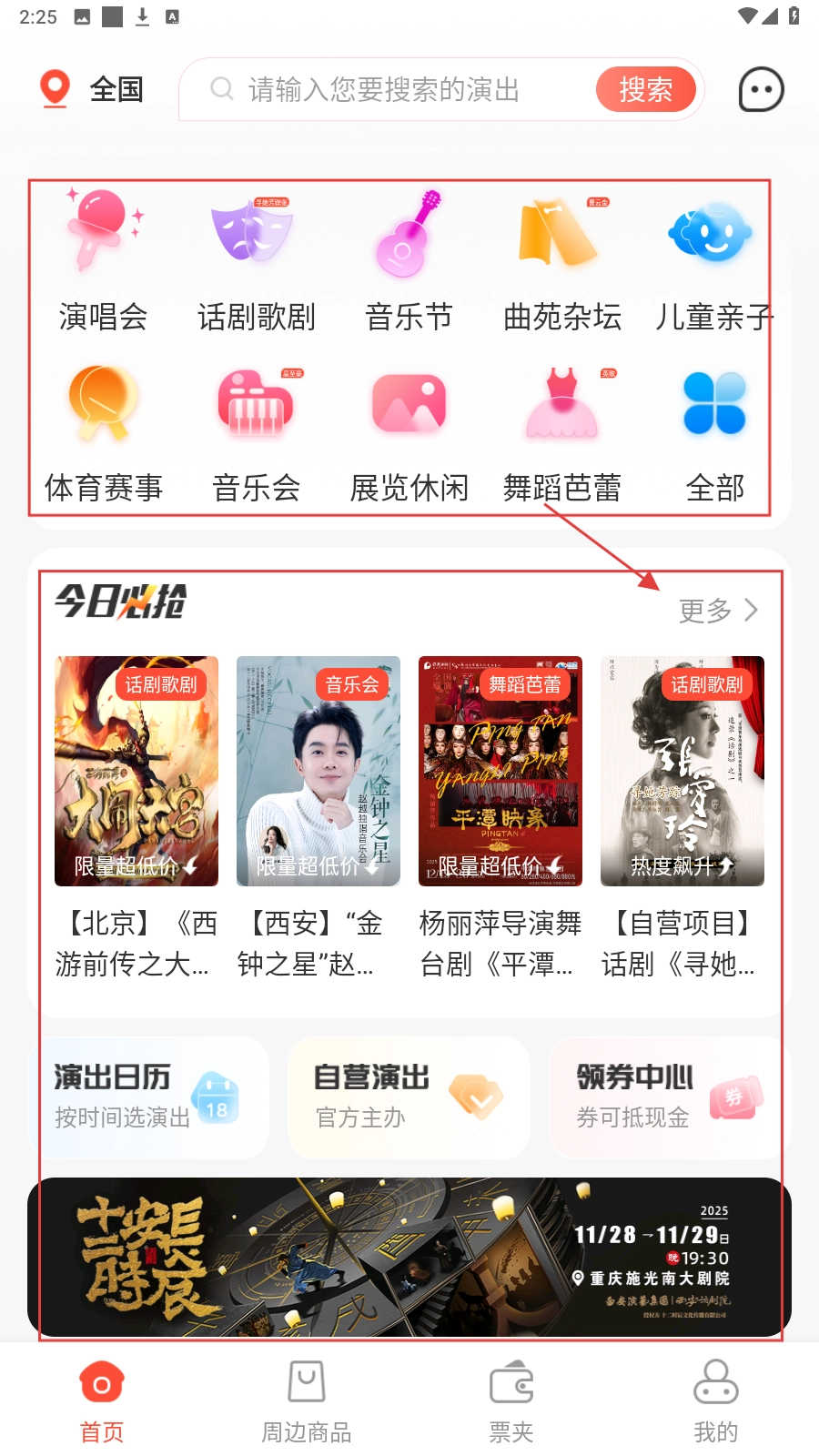 1、打开应用,选演出分类(如【舞蹈芭蕾】等),点【更多】进必抢榜单页。
