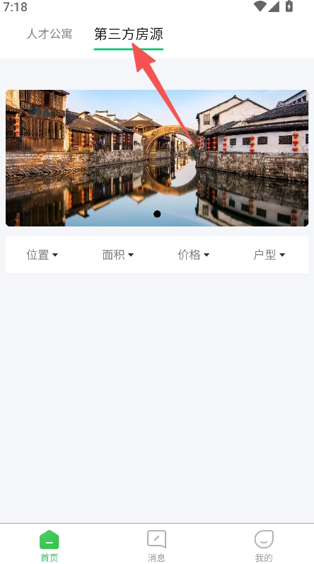 1、具备房源分类展示能力,设有第三方房源专区,可实现房源类型的切换操作。