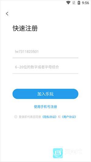 1、打开乐玩游戏,用户需要使用手机号进行注册并登录。
