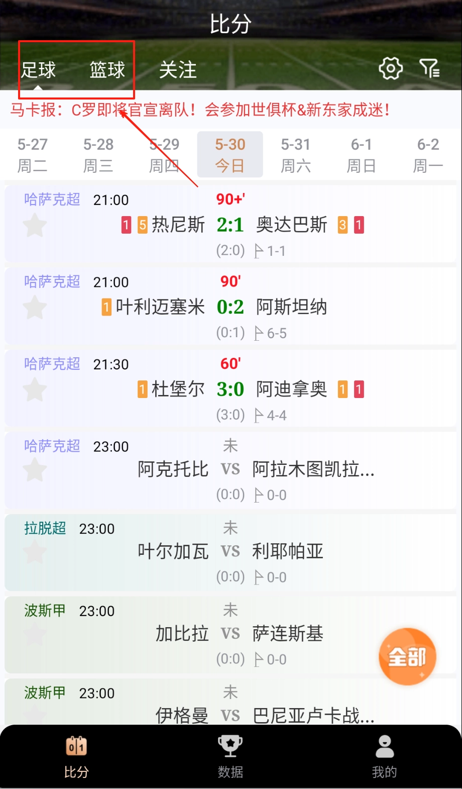 1、 实时更新全球足球篮球赛事比分信息,包括比赛进度与进球时刻,确保数据准确及时传递用户手中。