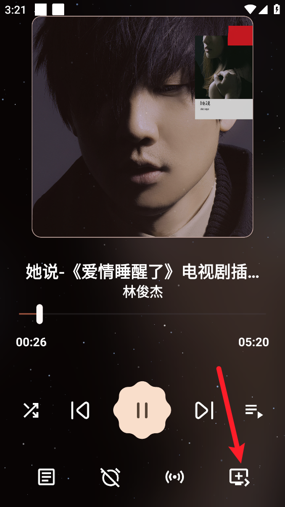 4、然后在播放页点击箭头所指图标。