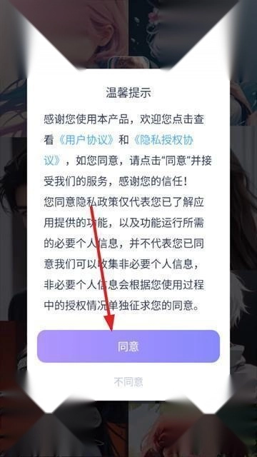 2、点击同意温馨提示