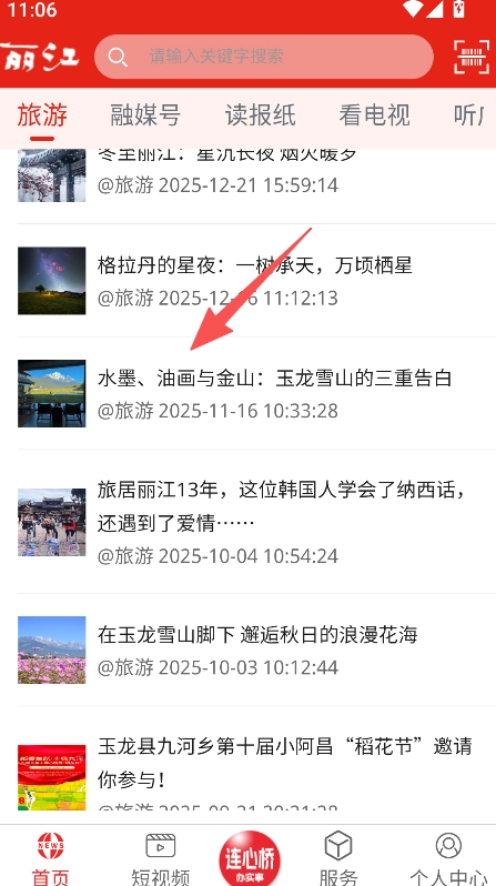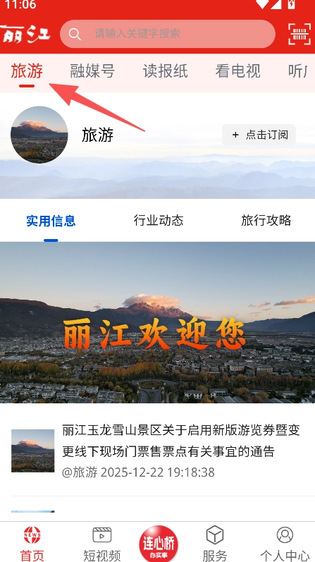 3、按照板块类别来展示内容,其中旅游板块会专门呈现丽江旅游的相关资讯,这样能让大家更快捷地找到自己需要的信息。