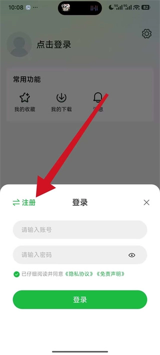2、在个人中心页面点击登录区域,弹出登录与注册的选择窗口。