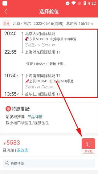 3、系统会推荐最佳的选择航班,我们可选择复合自身要求的航班