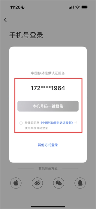 3、进入手机号登录页面后,先勾选相关协议,再点击“本机号码一键登录”按钮,就能完成账号登录操作。