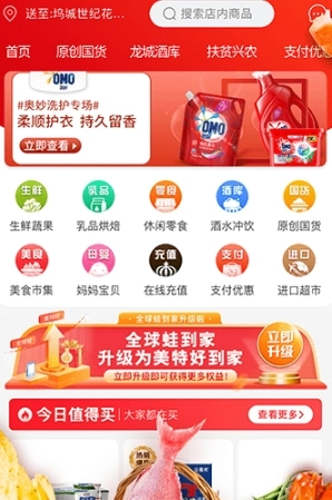 商品种类更齐全,涵盖生鲜百货、粮油饮品等上万种商品,线上线下商品完全同步,足不出户就能享受逛超市的便利。