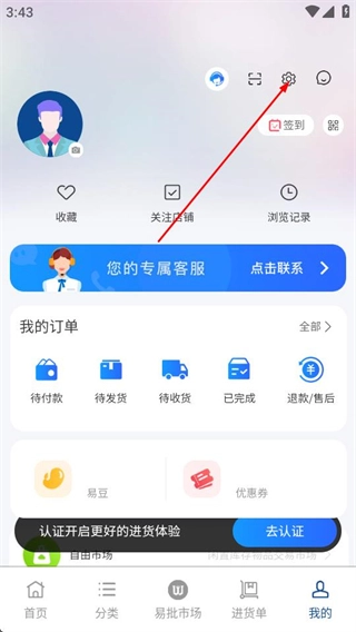 在个人中心页面,点击设置图标,即可进入系统设置页面。