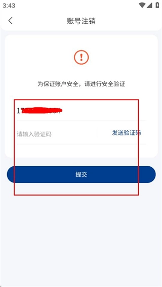 5、进入安全验证页面后,填写好验证码并点击提交按钮,就能完成账号注销的全部流程了。
