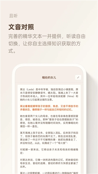 且听是一款功能丰富的听书应用,同时也是全新上线的AI音频知识平台。它专注于利用人工智能技术,对优质书籍和深度内容进行结构化的精细讲解,助力用户更高效地获取知识。平台采用“听+读”双模式,既支持音频播放,也能实现图文同步阅读,完美适配通勤、做家务、睡前等各类碎片化场景。其内容覆盖认知提升、商业思维、心理学、科技人文等多个领域。