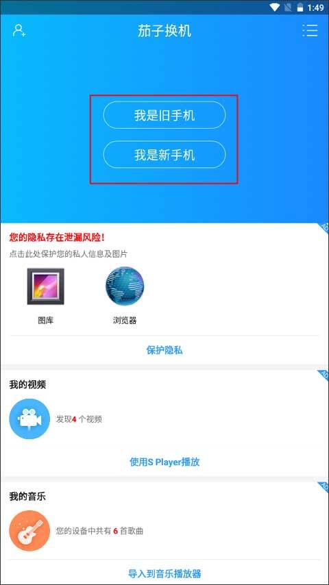 1、打开app之后,你会发现只有两个按钮“我是旧手机”和“我是新手机”,根据你手机的实际情况来选择相应的按钮。