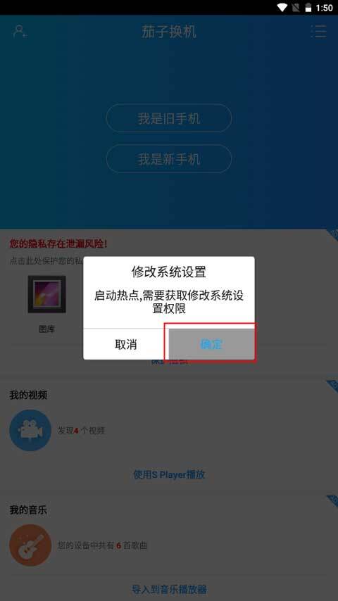 2、下面就是要启动热点,不过需要先获取修改系统设置权限,点击下方的确定按钮。