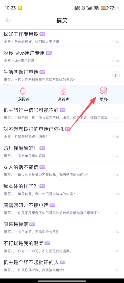 2、于搞笑铃声列表当中,寻觅到自己心仪的铃声,然后点击它,即可进入该铃声的操作界面。