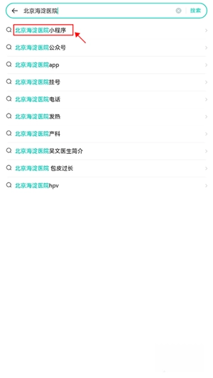 2、可以在搜索框里输入计划去就诊的医院名称来搜索,也能通过滑动屏幕的方式查找就诊医院,找到后点击该医院。