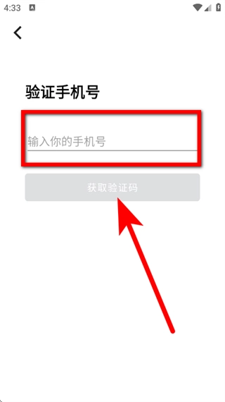 2、进入手机号验证页面后,先输入手机号,再点击“获取验证码”按钮。