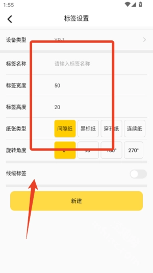1、启动签立得应用,进入主界面后点击“新建标签”选项,接着选择合适的尺寸与模板。
