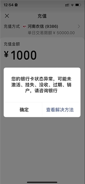 4、当银行卡超出有效期且用户未及时更换新卡时,账户状态会出现异常显示。