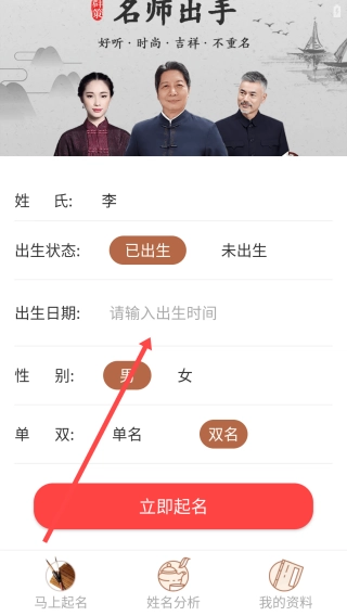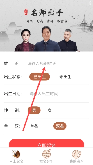 1、打开起名取名字八易堂,点击【请输入您的姓氏】
