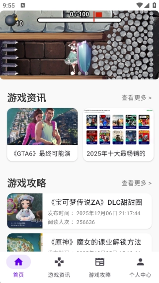 1、在首页能够获取游戏资讯、游戏攻略等各类信息;