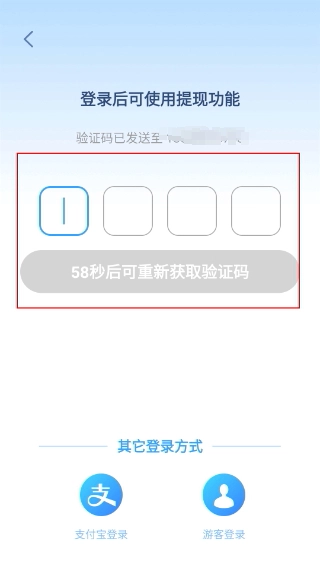 3、进入验证码填写页面,需填写四位验证码,等待【58秒后可重新获取验证码】的倒计时结束,完成验证操作。