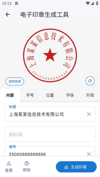 1、可对印章的标题、副标题、编号等内容进行编辑,还能自主调整字号大小、字体样式以及位置布局。