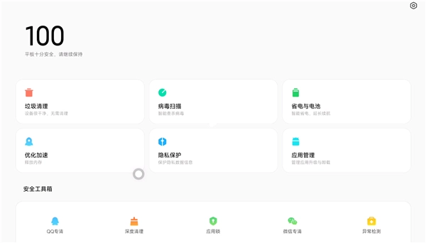 小米平板管家是小米科技开发的一款小米平板专属智能管理优化的系统安全类软件。在软件中用户可以一键清理垃圾文件、关闭后台的程序,还能检测平板目前的安全状态,进行风险评估,保障手机的安全。软件内有一键加速、深度清理、隐私保护等等功能,用户都可以根据需求使用。此外,软件还会给用户进行更新提醒,适配小米的各型号平板。