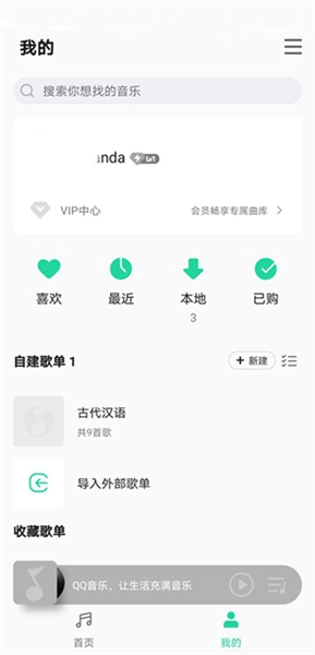 1、第一步先登录你的账号,进入“我的”页面后,点击“导入外部歌曲”这个选项。