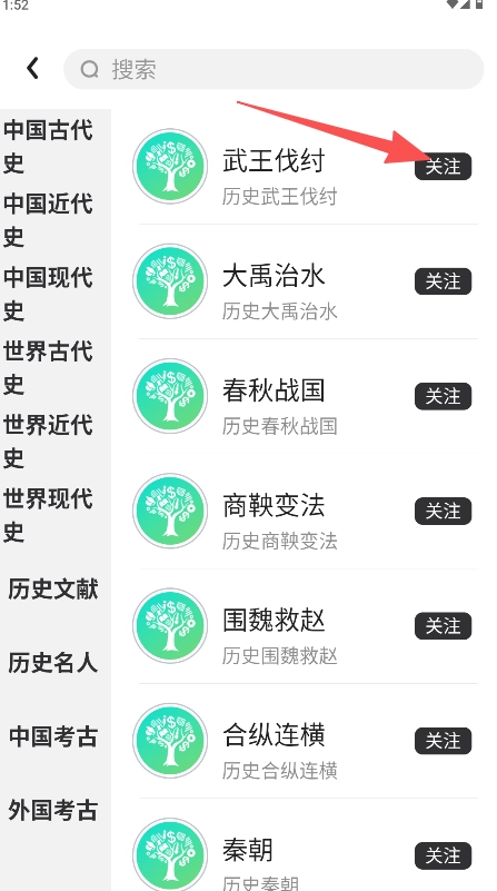 3、选择具体的历史主题即可查看详细内容或关注。