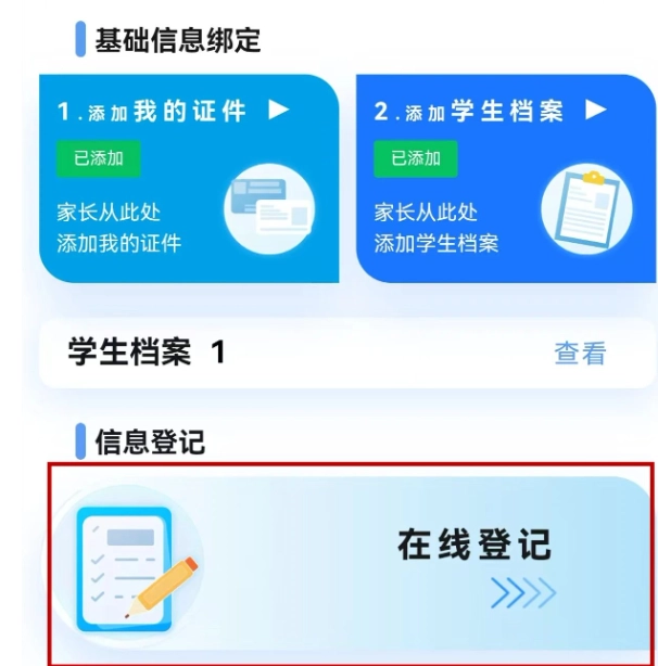 您可以点击【添加我的证件】按钮来添加证件照,接着点击【添加学生档案】按钮完成学生档案的添加操作。需要说明的是,各类电子凭证信息支持直接拉取,点击添加后系统会自动获取相关信息;若自动获取失败,您也可以手动填写所需信息。