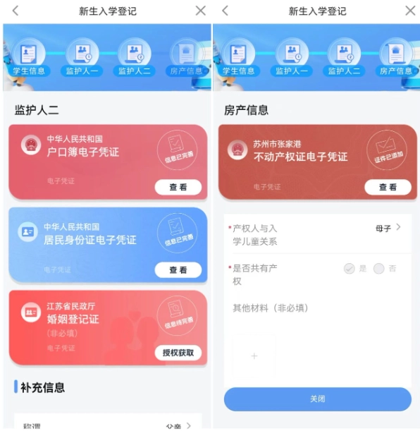 依次登记学生信息、监护人一信息、监护人二信息和房产信息,之后点击提交,就能完成新生信息采集。
