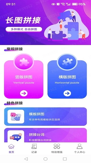 1、在首页带来了常规拼接和特色拼接服务,拼图模板自定义。