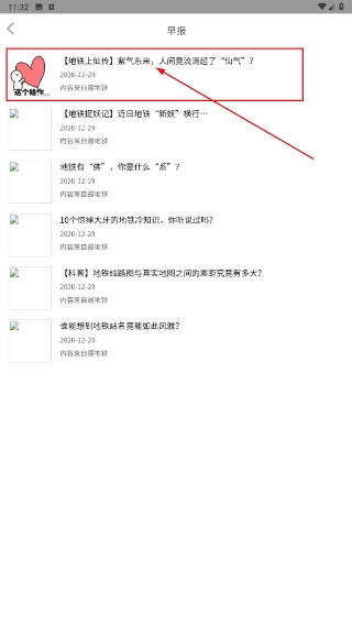 3、在早报列表里,找到你想查看的目标文章(例如《【地铁上仙传】紫气东来》),点击该文章即可进入详情页面。