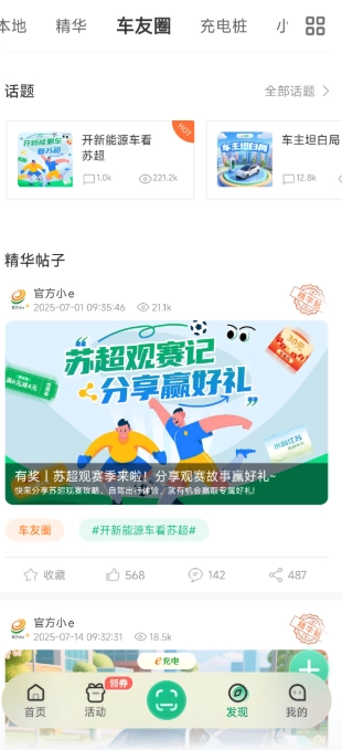 5、在“e友车圈”板块,你能够分享自己的用车心得,了解最新的行业资讯,参与专属的优惠活动,和来自全国各地的车友一起,共同构建绿色出行的生态环境。