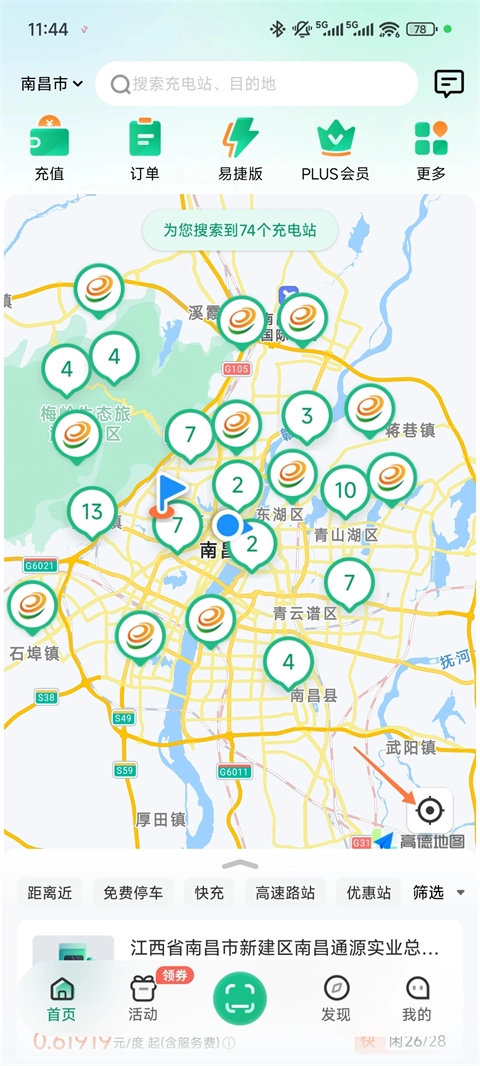 2、随后点击距离自己最近的充电桩