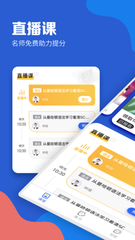 gmat考满分app推出的「直播课堂」,是又一学习途径。每天都有诸多场名师真人在线直播,既能在线授课,还能解答考生疑问。
