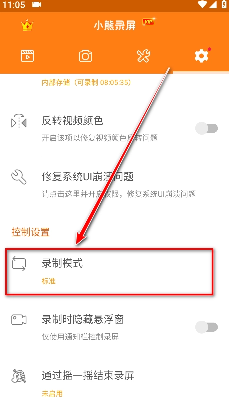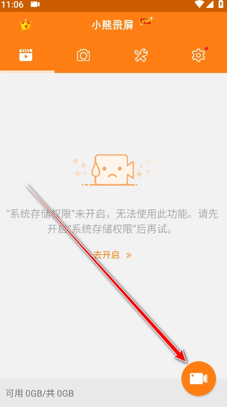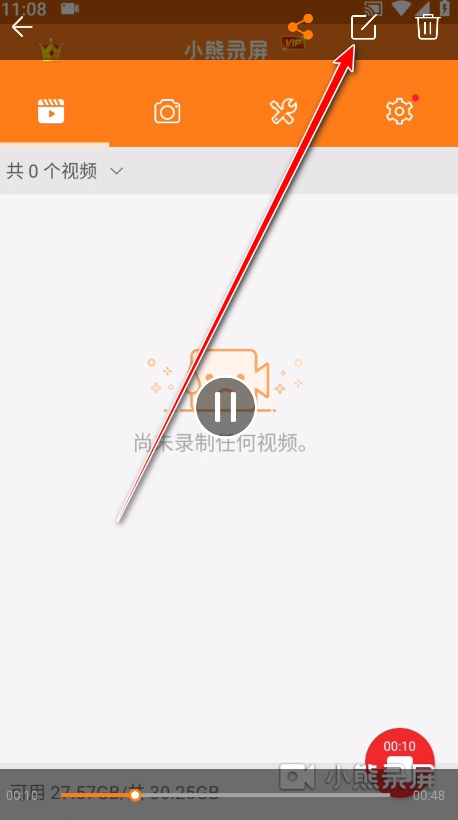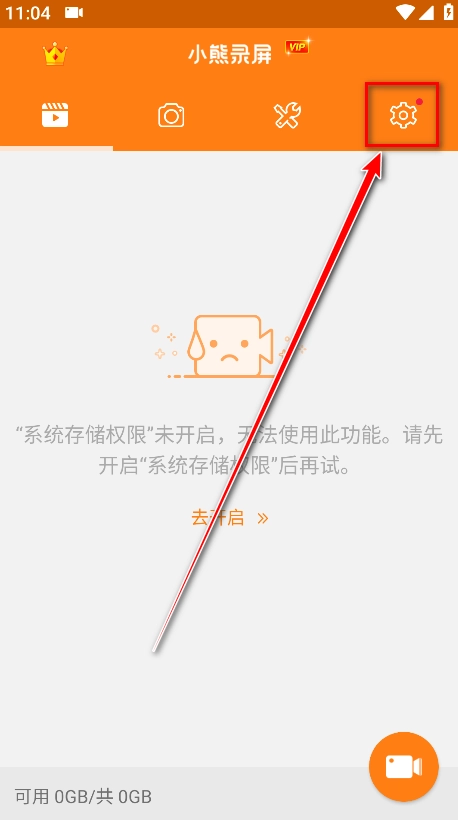 1、启动小熊录屏应用,点击右上角的设置图标,进入设置页面