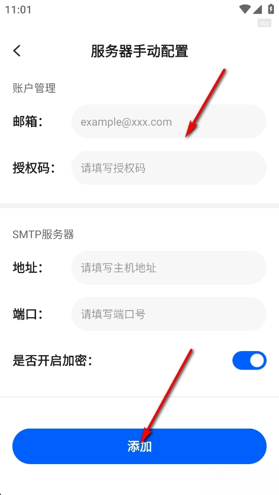 输入账号和授权码,点击【添加】即可