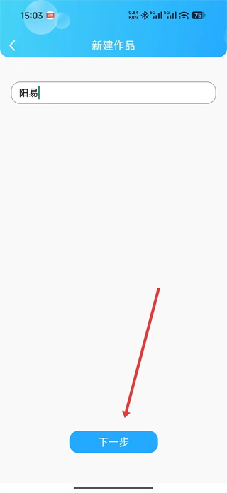 2、在新建作品页面输入作品名称,如阳易,点击下一步,进入作品创作页面。