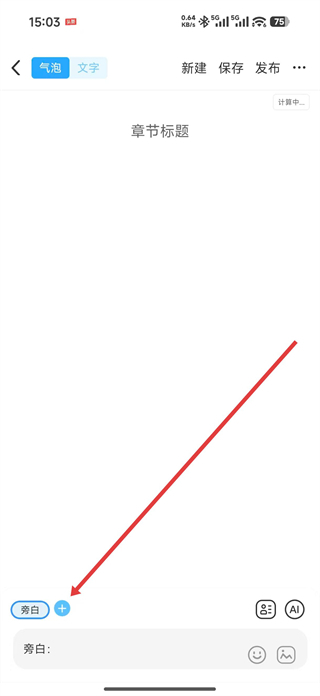 3、在作品创作页面可选择气泡或文字模式,点击添加按钮,进入角色设置页面。