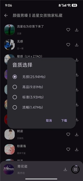 3、选择音质后点击