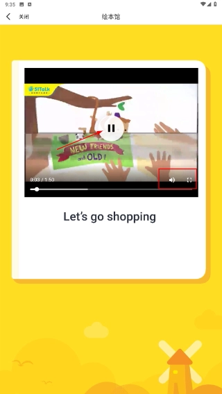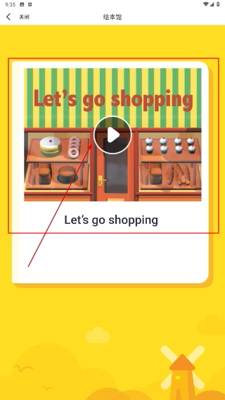 3、在绘本详情页里,点击画面中的播放按钮,就能启动【Let’s-go-shopping】相关内容的播放。