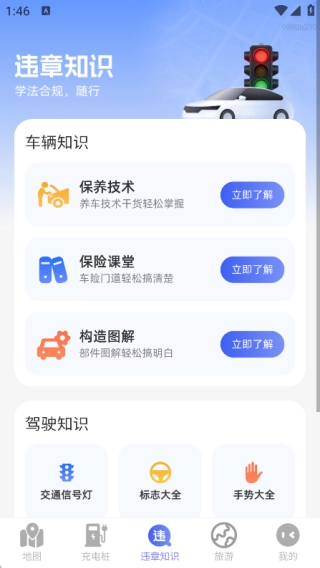 3、涵盖车辆保养、保险课堂及交通标志等知识,助力了解用车常识与交管法规。