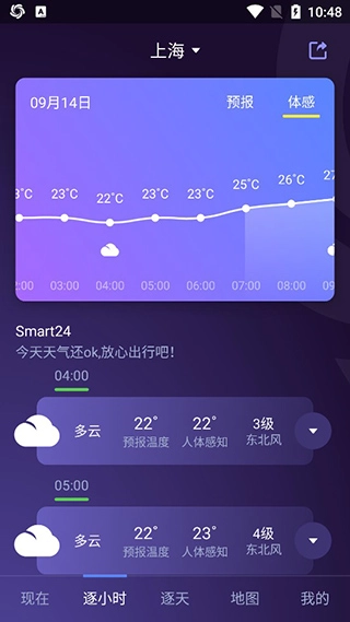 4.而且还支持逐小时查看天气情况,未来天气一目了然。
