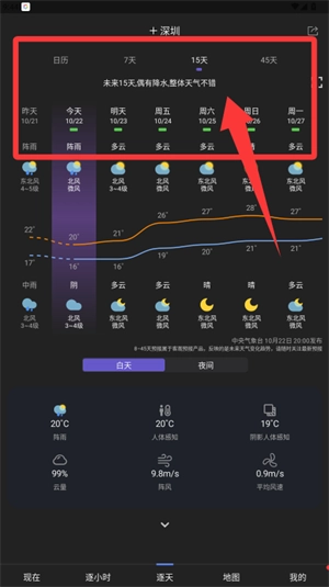 3、进入天气预报页面,可选择未来多日查看详细天气趋势。