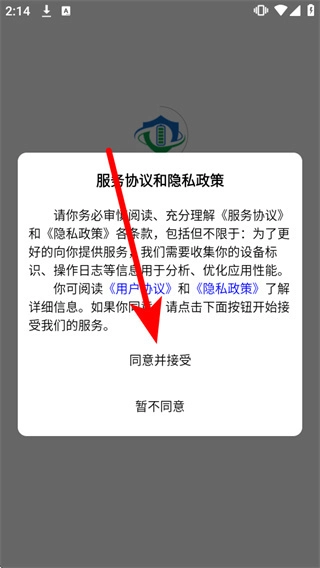 1、启动满电云应用,待弹出弹窗后,点击“同意并接受”按钮,即可进入首页。