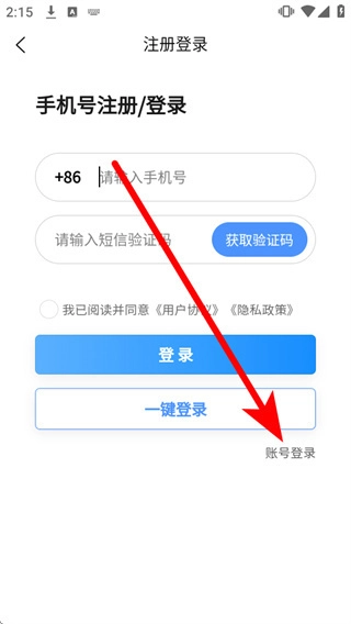 3、进入注册登录页面后,点击页面下方的“账号登录”选项,即可切换到账号密码登录的界面。