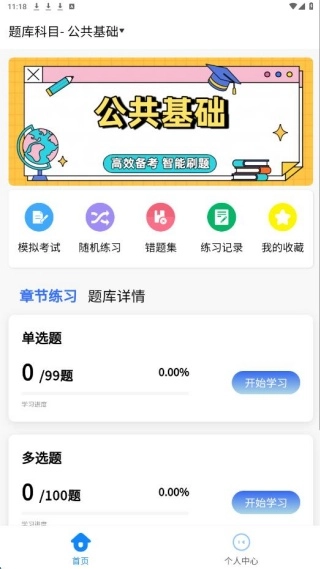 3、首页提供了模拟考试、随机练习、错题集等功能。